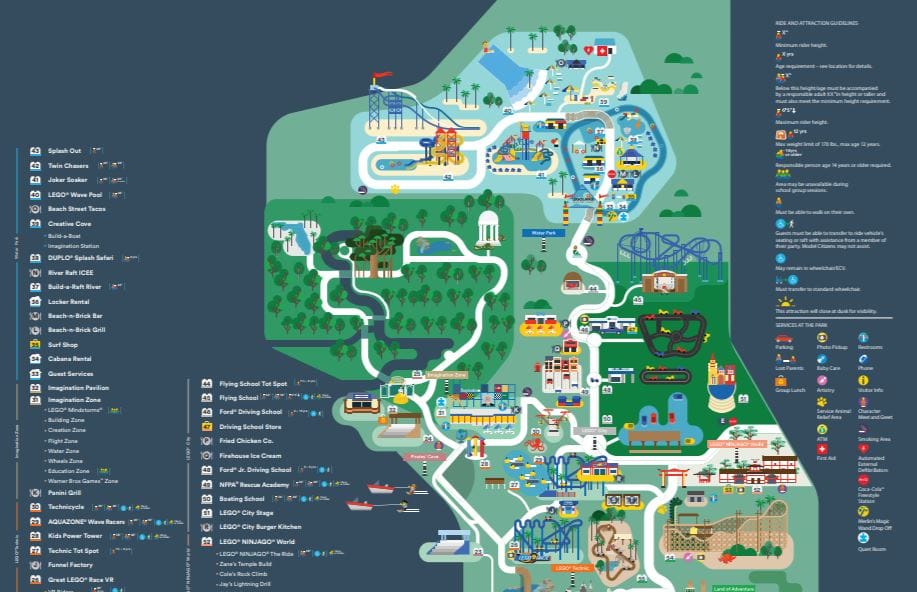 Seit 2011 können grosse und kleine Fans von Legos im LEGOLAND Florida Resort ihren Spass haben. Hier gibt es mehr Informationen zum LEGOLAND Florida Resort. Hier eine aktuelle Karte des Legoland Florida: