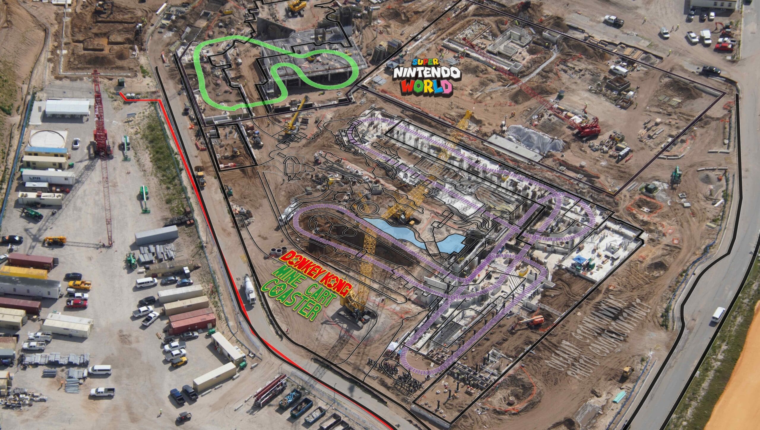 Oben links wird zudem an Yoshi’s Adventure und oben rechts (noch nicht viel sichtbar) an der Mario-Kart-Attraktion gebaut. Eine detailliertere Analyse findet ihr zudem bei Alicia Stella auf OrlandoParkStop.