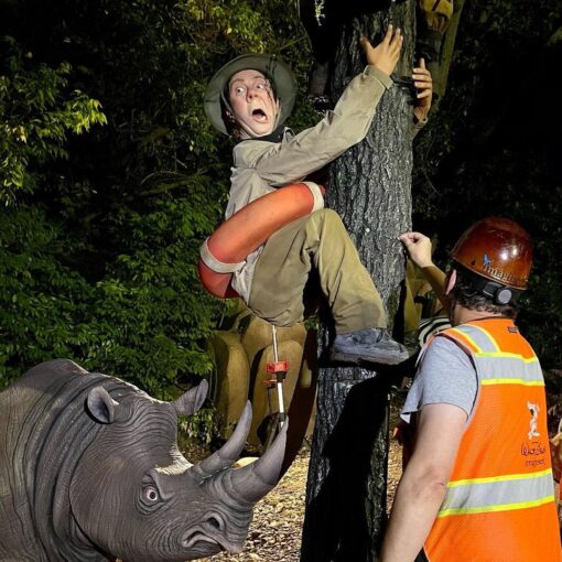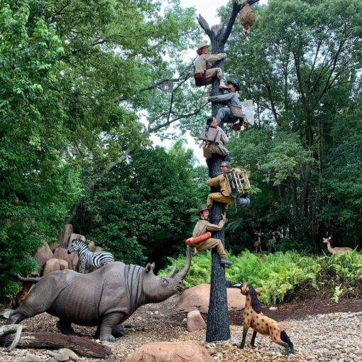 Die oben vorgestellten Charaktere, die auf ihrer Fahrt durch den Jungle auf einen Baumstamm geflüchtet sind, sind nun auf der Jungle Cruise im Magic Kingdom Orlando zu bestaunen. Walt Disney Imagineering hat Bilder geteilt, auf denen die gesamte Szene aber auch eine nähere Aufnahme der neuen Personen zu sehen sind.